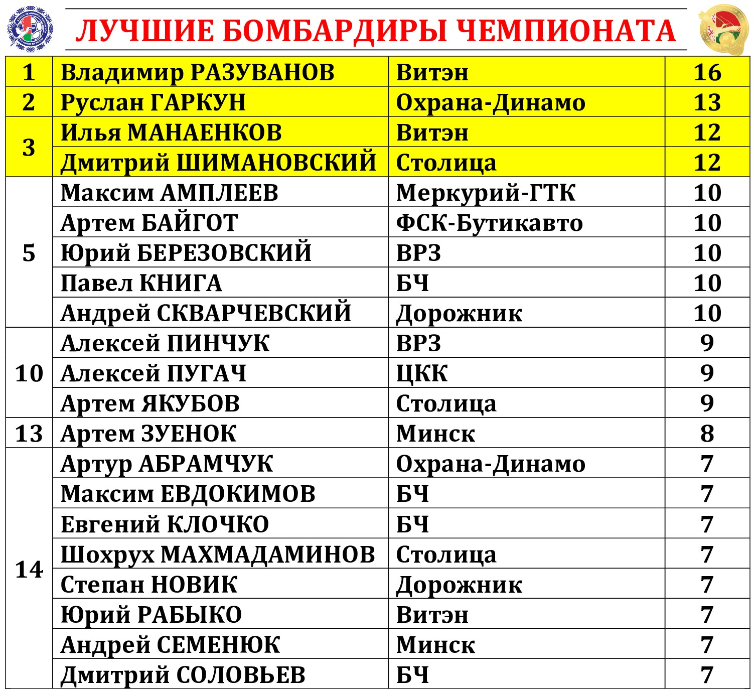 13-й тур XXXVII чемпионата Беларуси. Итоги