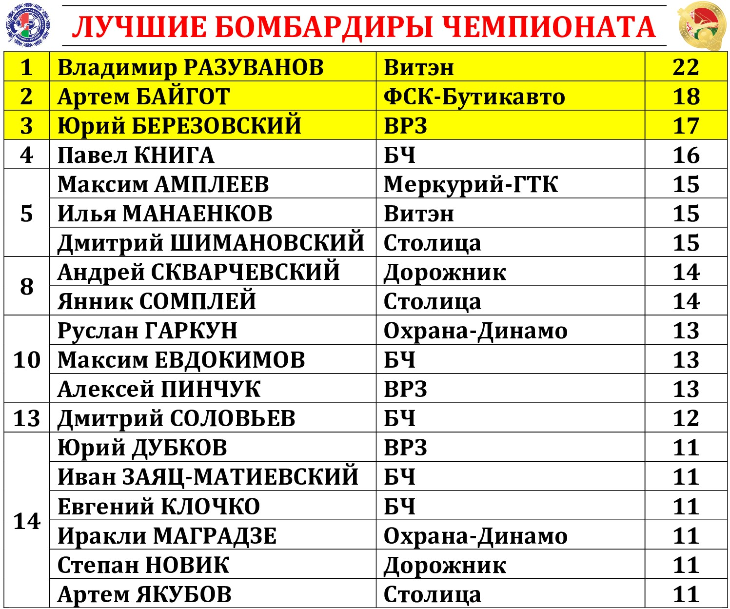 СИМВОЛИЧЕСКАЯ СБОРНАЯ 22-го ТУРА