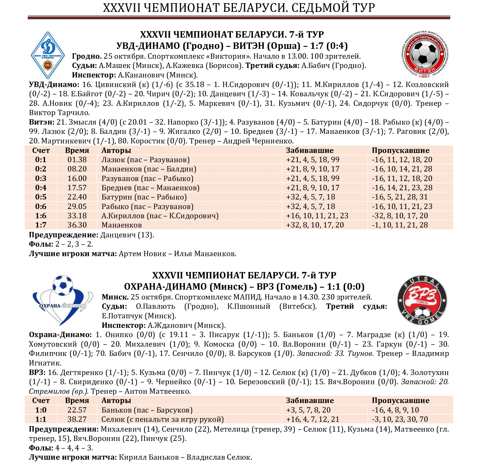7-й тур XXXVII чемпионата Беларуси. Итоги