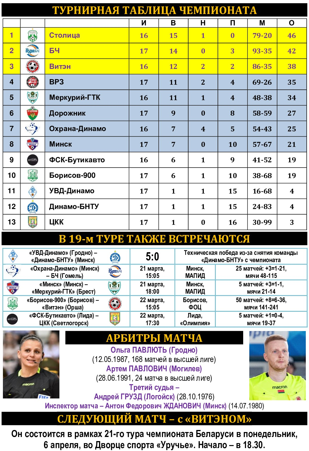 Анонс 19-го тура. «Столица» – ВРЗ