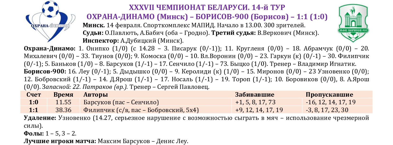 14-й тур XXXVII чемпионата Беларуси. Итоги