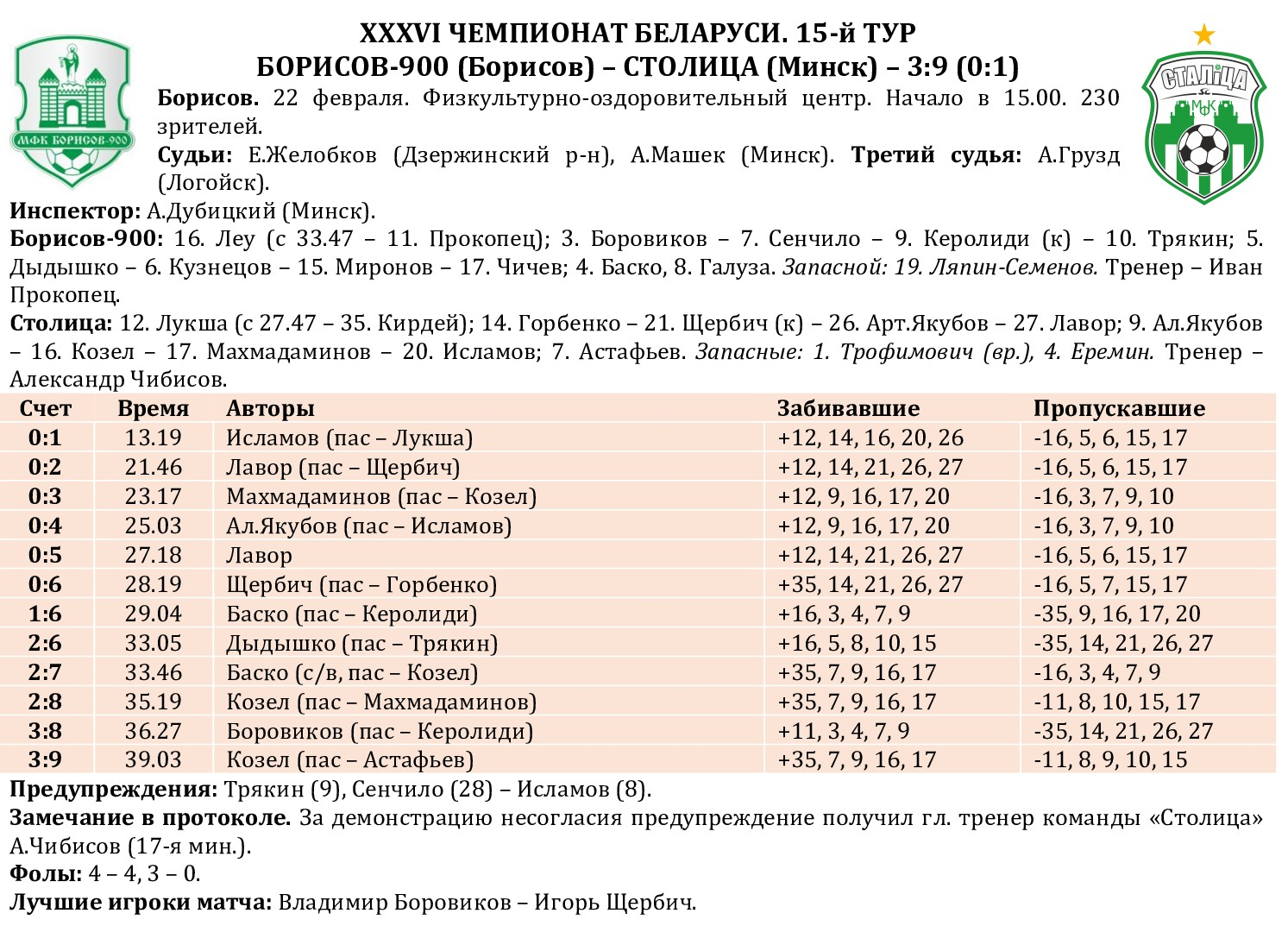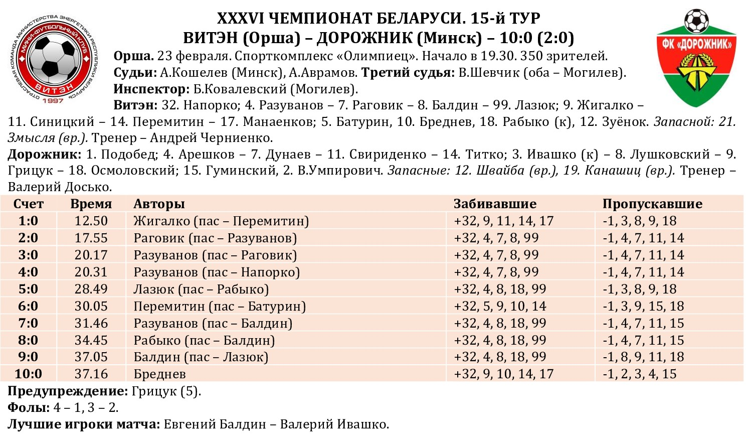 15-й тур XXXVI чемпионата Беларуси. Итоги