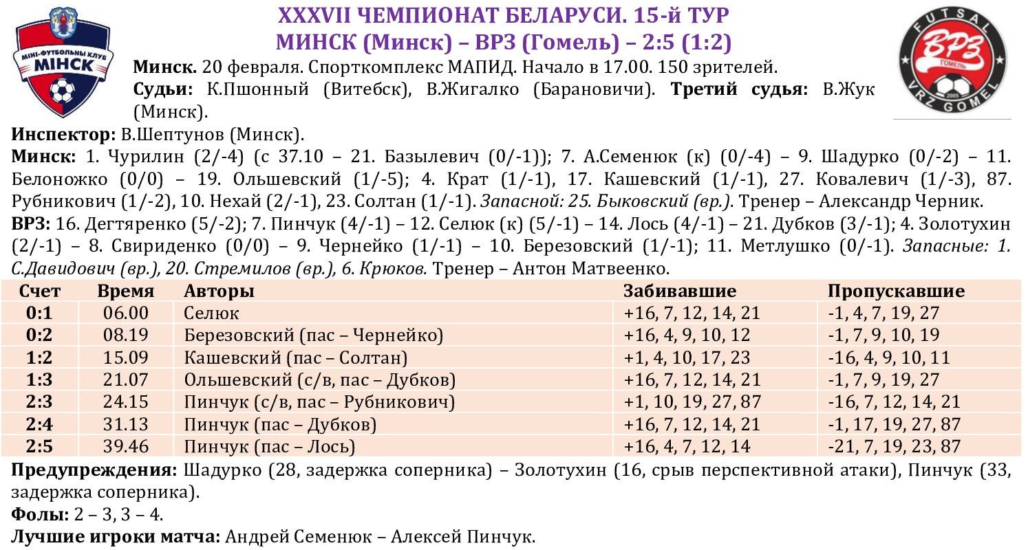 XXXVII ЧЕМПИОНАТ БЕЛАРУСИ. 15-й ТУР