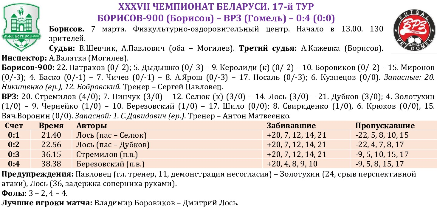 XXXVII ЧЕМПИОНАТ БЕЛАРУСИ. 17-й ТУР