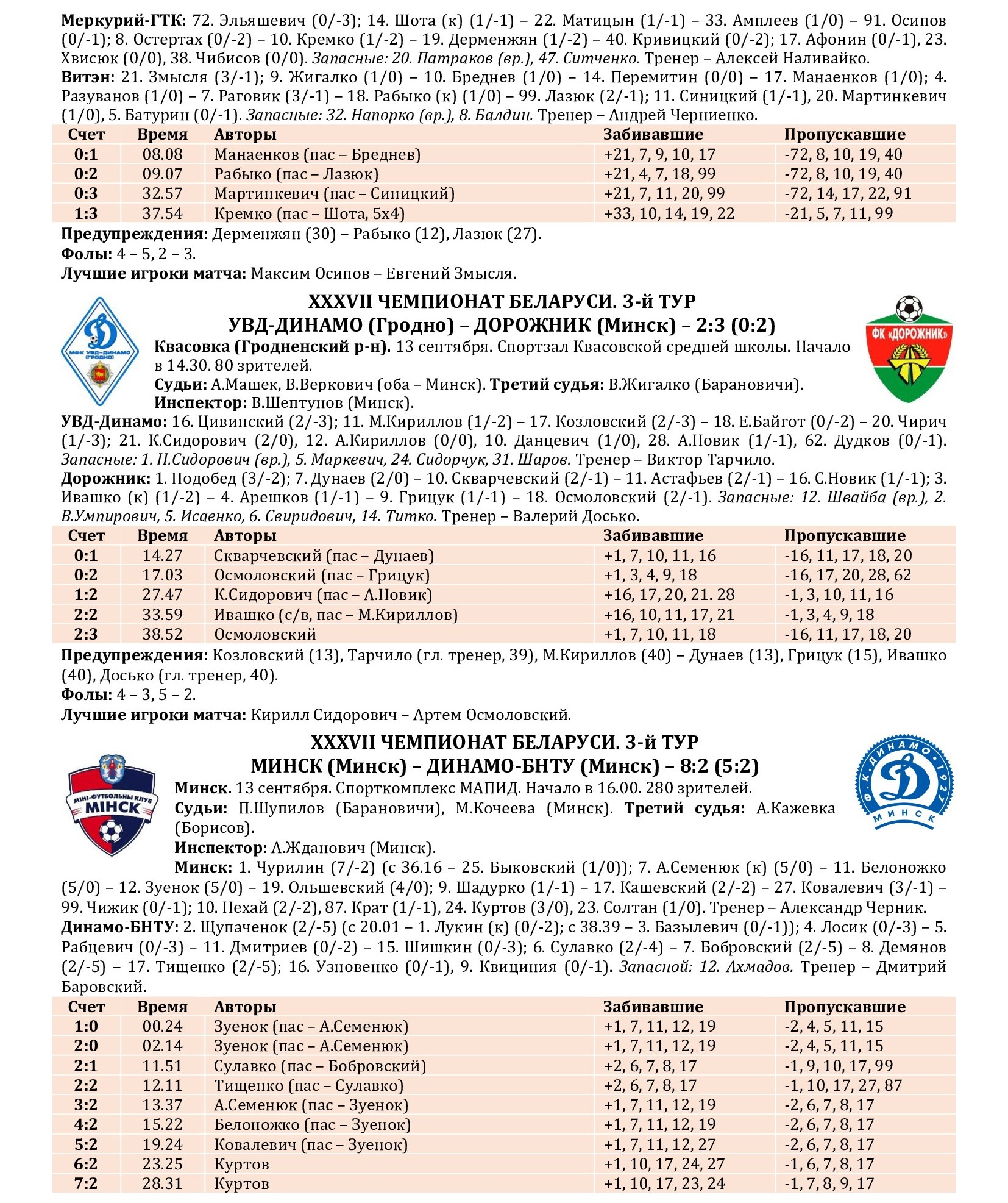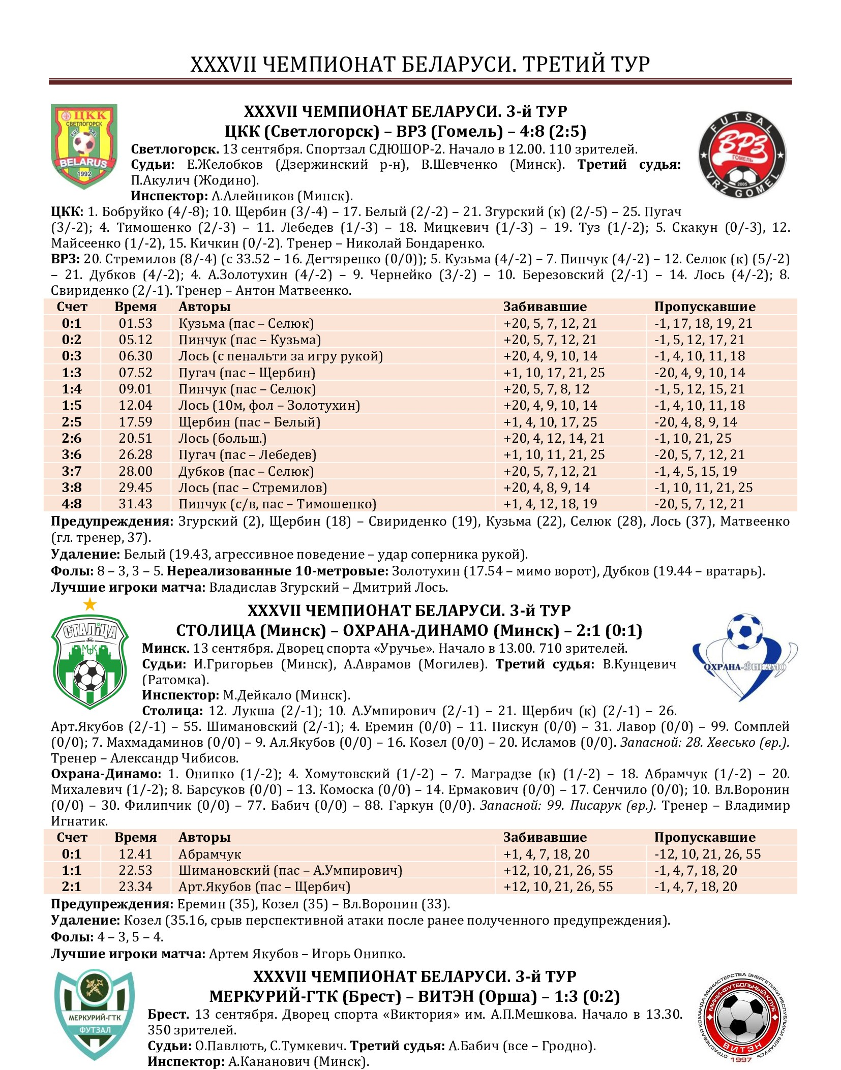 3-й тур XXXVII чемпионата Беларуси. Итоги