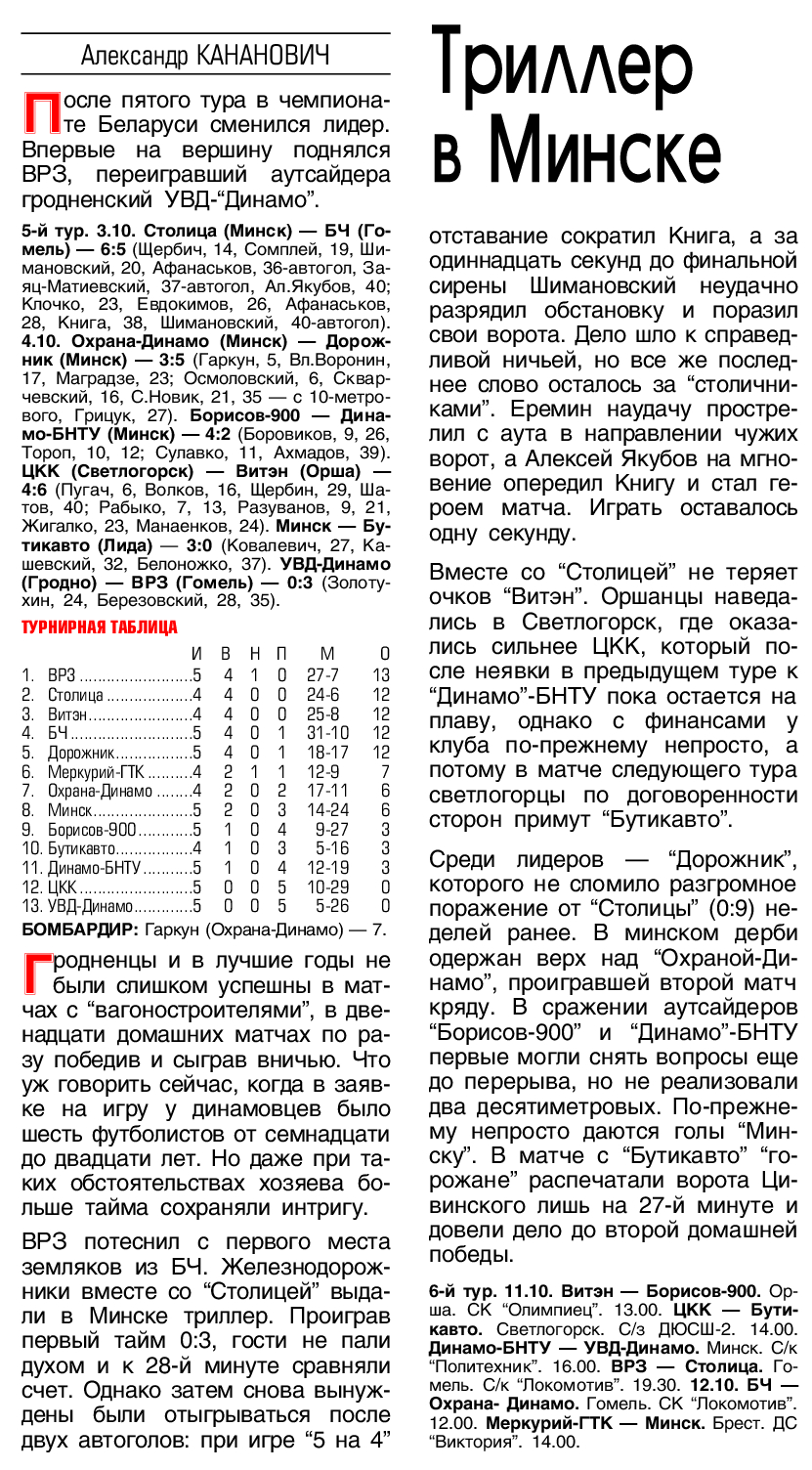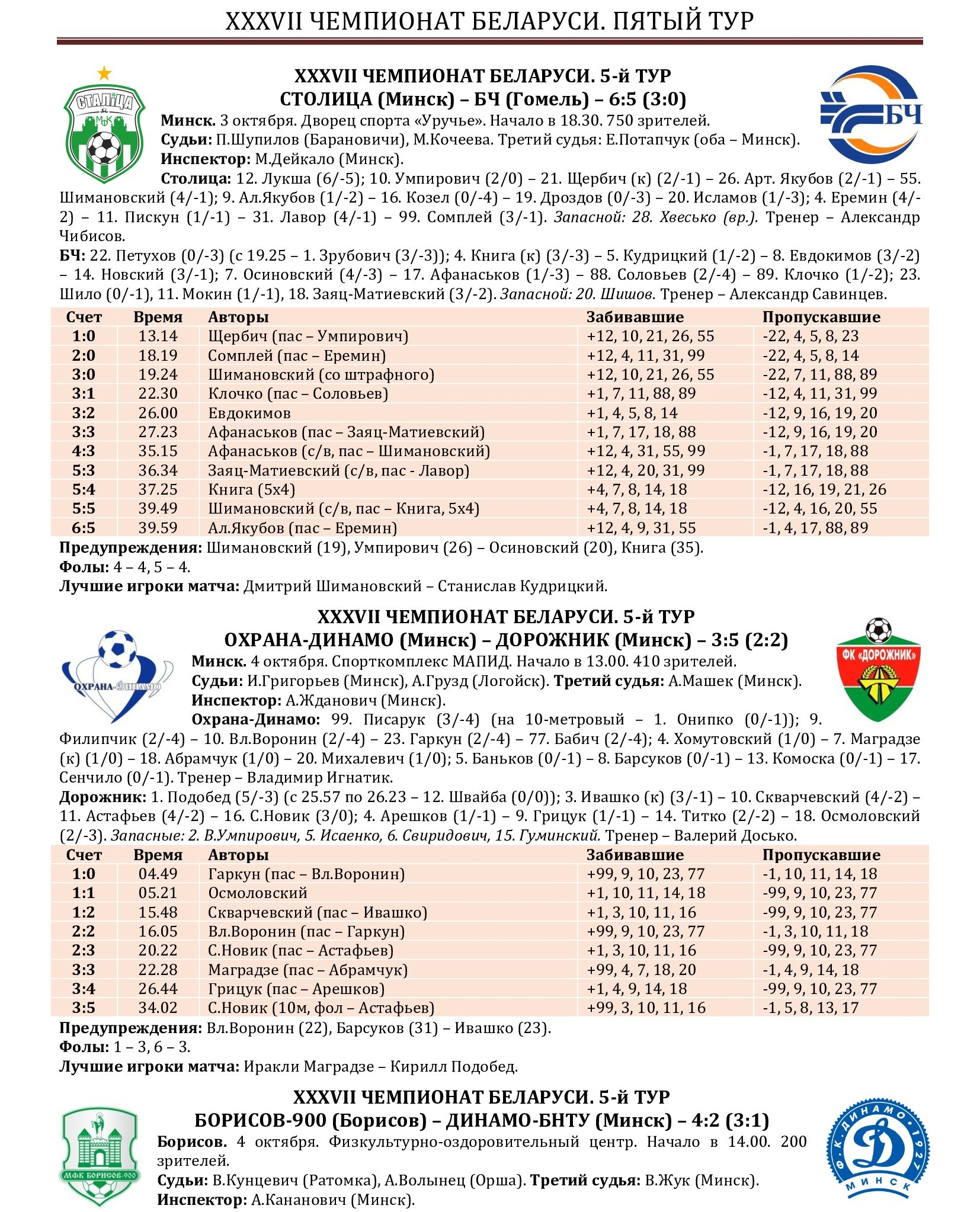 5-й тур XXXVII чемпионата Беларуси. Итоги