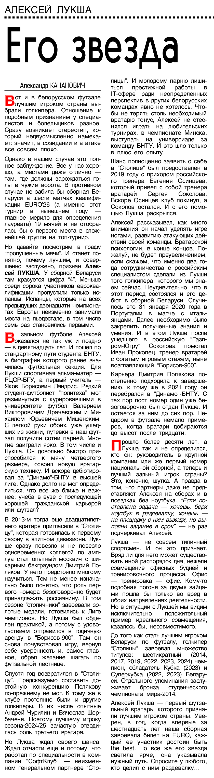 Предлагаем вашему вниманию очерк об лучшем игроке минувшего сезона, опубликованный в газете «Прессбол».