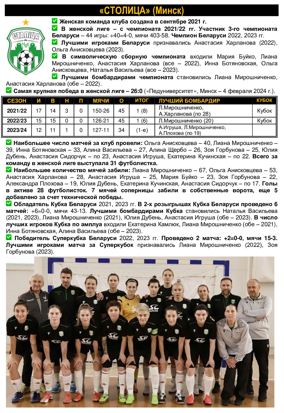 11.02.2024. Вортекс – Столица – 0:9 (0:4) (Плохова, 8, Горбунова, 9, Глущенко, 12, Мирошниченко, 15, Игруша, 25, Мустафаева, 29, Анисковцева, 31, 32, Кашинская, 35).