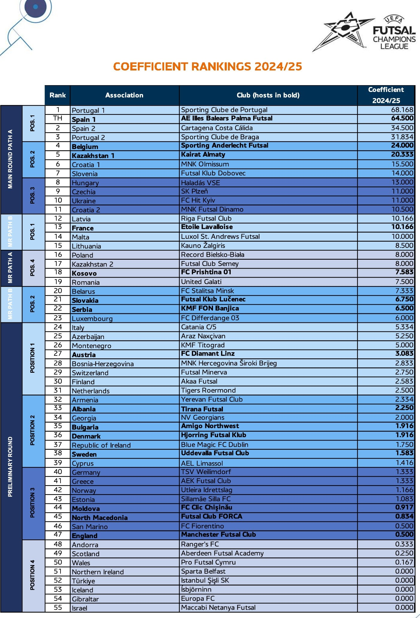 Четыре федерации – Португалии, Испании, Казахстана и Хорватии – имеют право заявить для участия по два клуба.