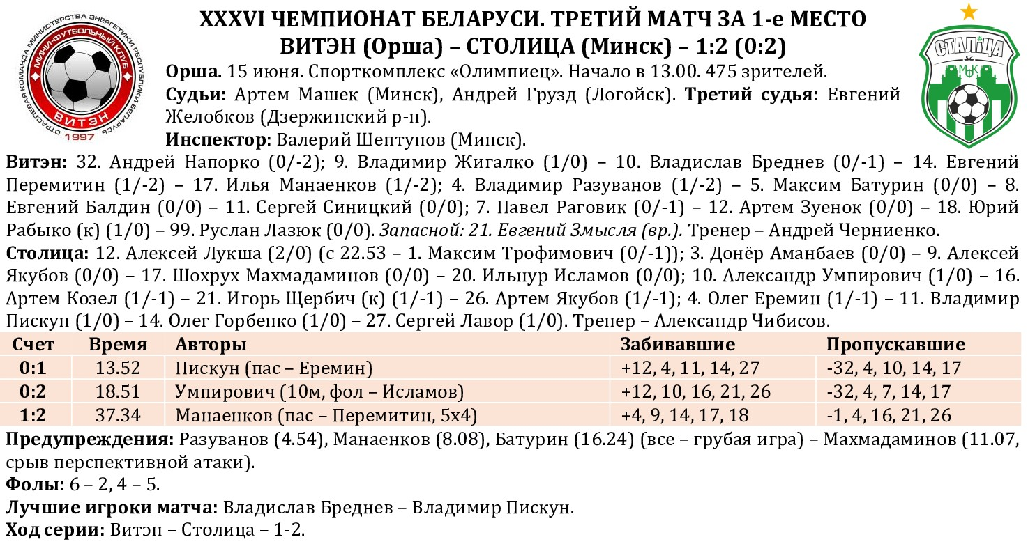 За 1-е место (до 3-х побед). Четвертый матч. 18.06. Столица – Витэн (Минск, ДС Уручье, 18.30).